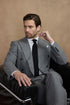 Costume croisé bas gris en flannel légère